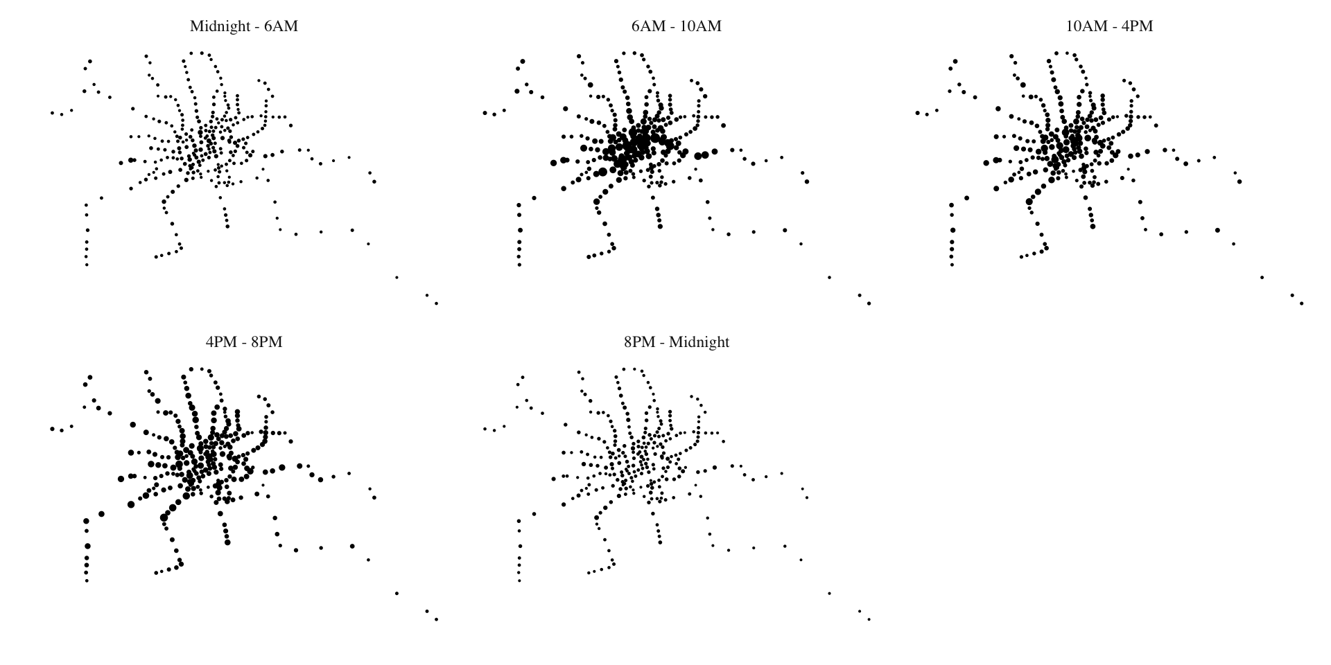 summarise(totaltrips = n())| totaltrips | time_of_day | geometry |